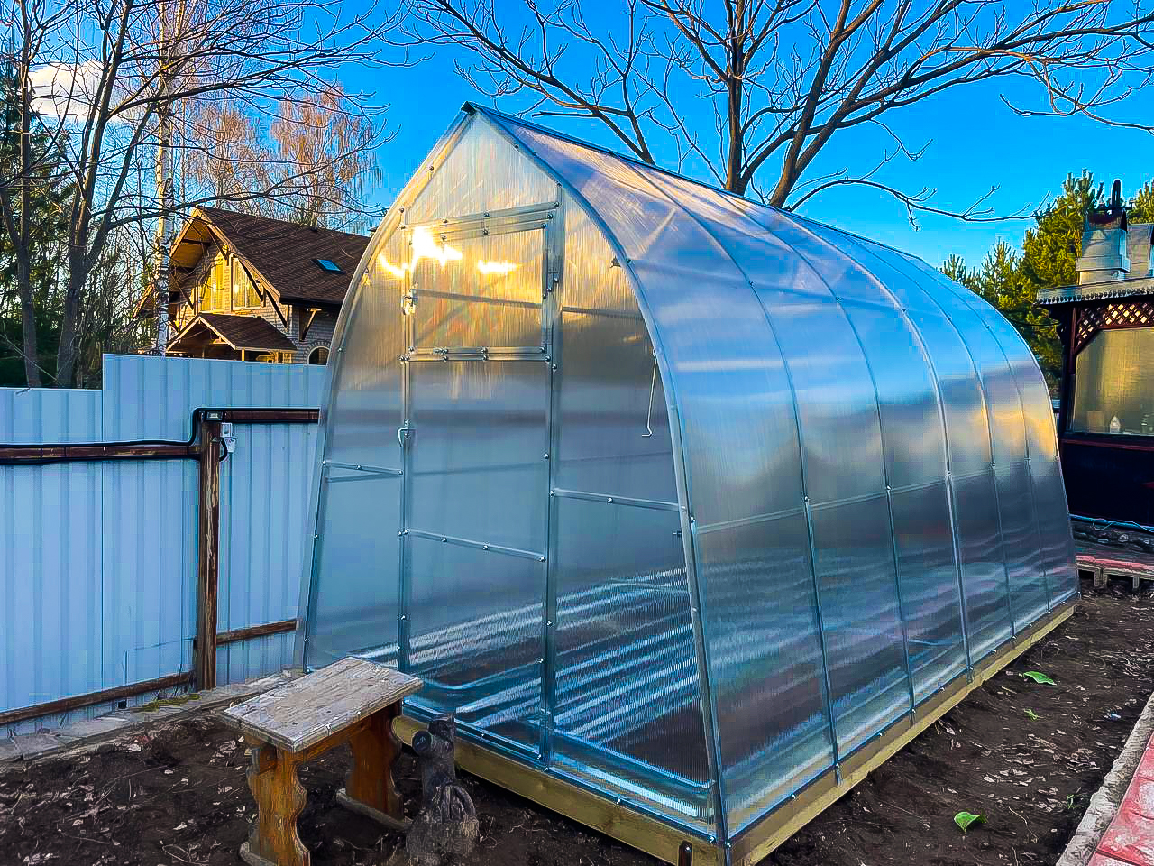 Уход зимой: не требуется (выдерживает снеговые и ветровые нагрузки, скидывать снег не нужно).